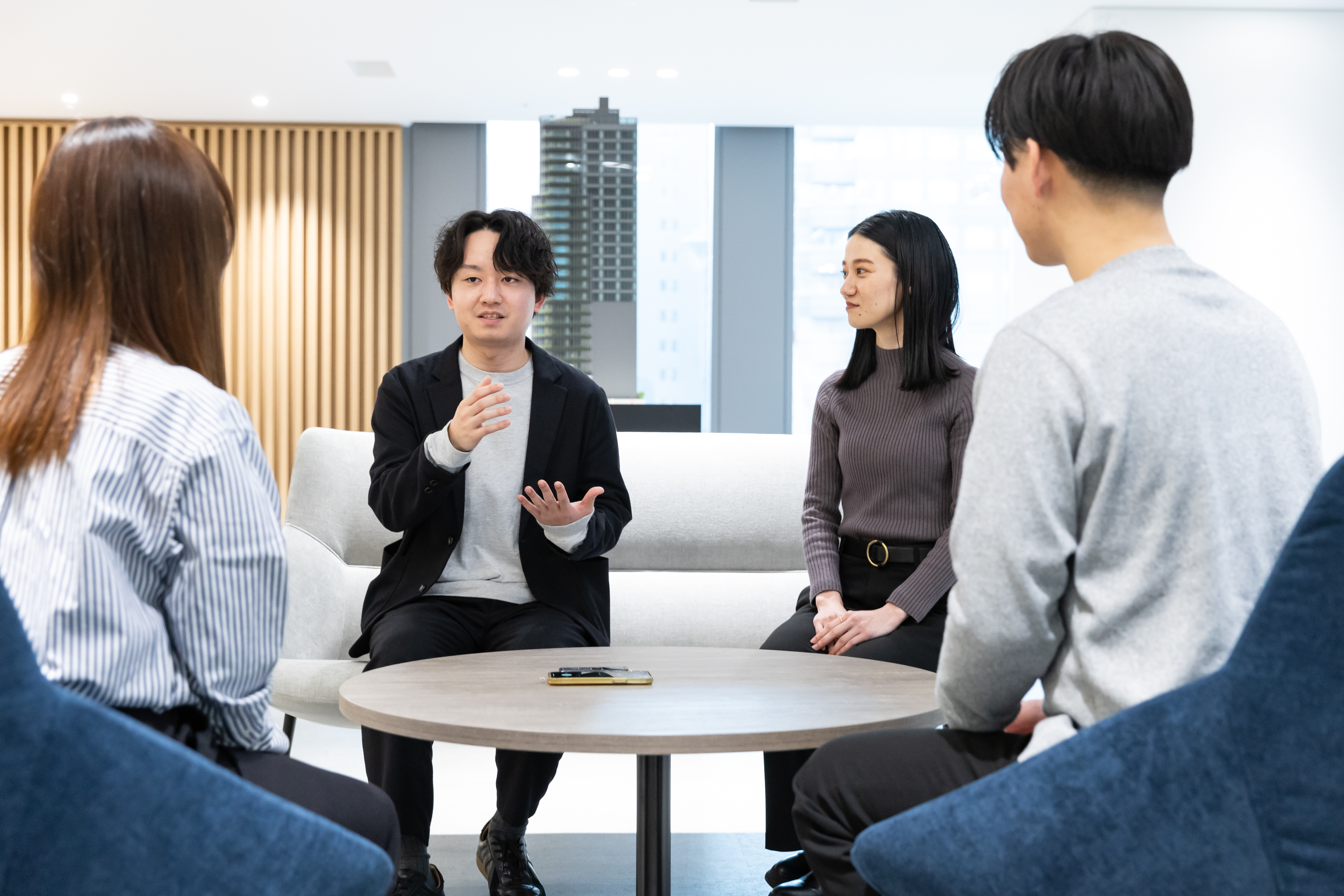 私が学生で、採用面接を受けた時、「自ら発言し、情報を収集し、疑問を持つ」ことを求められていると感じました。入社したら本当に自分から発言する人ばかり。 同期で集まると、話が途切れることがほとんど無いくらいです。